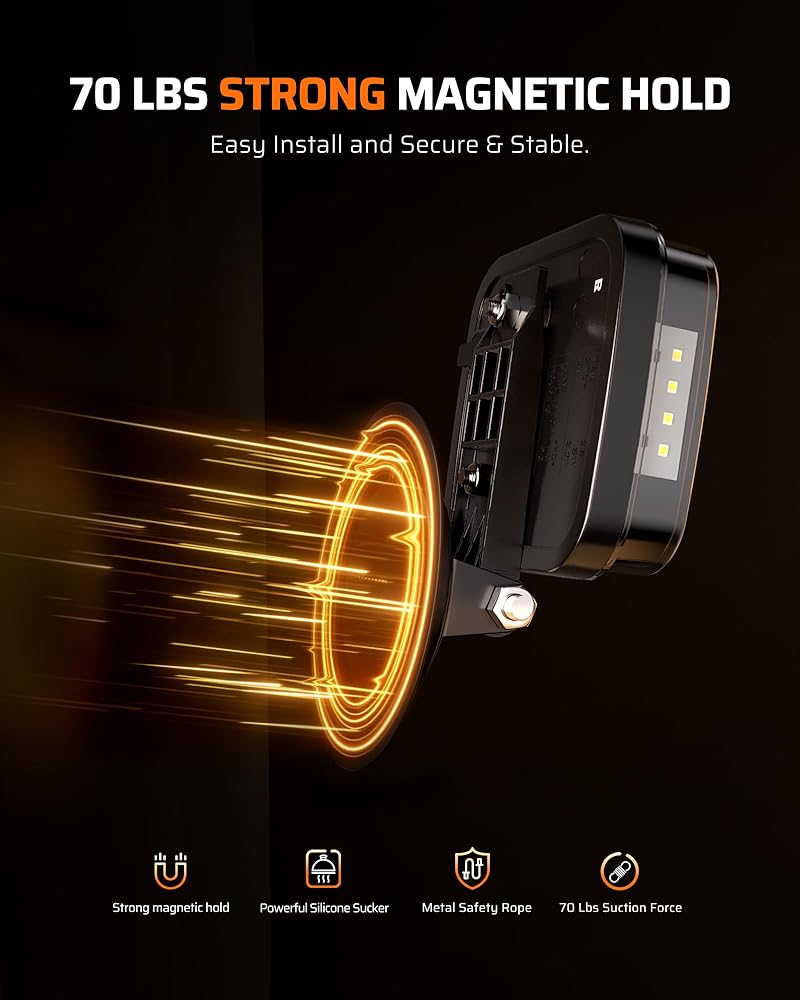 Secure Magnetic Mount with Anti-Scratch & Anti-Fall Protection: The ultra-strong magnetic base with silicone padding ensures a firm grip on any steel surface without damaging your vehicle's paint. A steel safety cable prevents the lights from falling or getting lost on bumpy roads. Includes an iron mounting plate for easy installation on non-metal surfaces like aluminum or wood trailers.