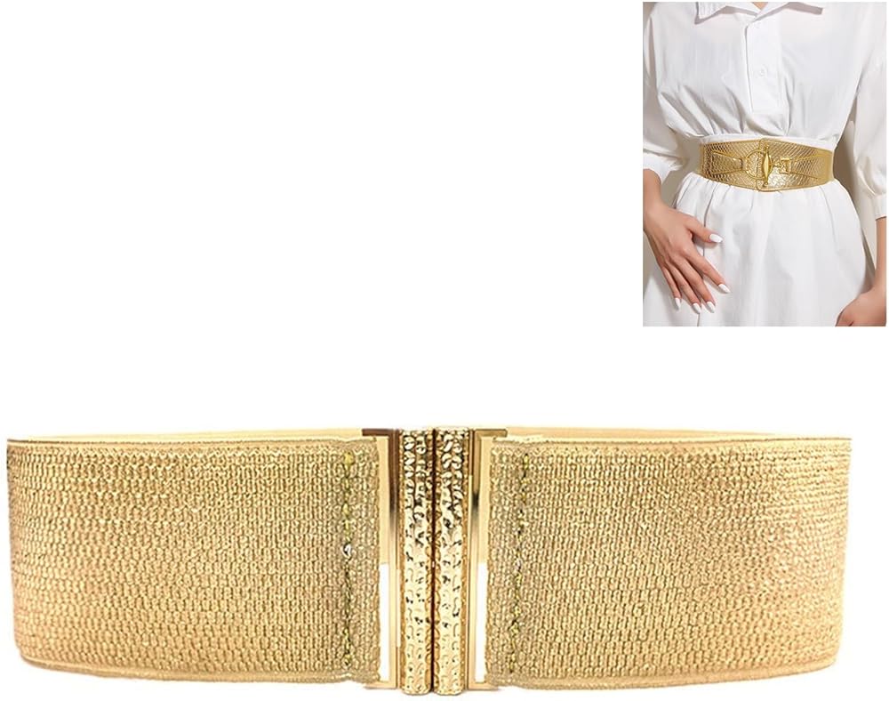 Features: Add a touch of luxuryand sophistication to youroutfit with this stylish gold waist belt. Perfect for those who want to stand outinthe crowd. This elastic wide waistband features a buckle free ed, allowing you to easily adjust the waist size according to your preference. Made from great quality materials, it is soft, comfortable, and for long lasting use. Designed for fashion forward women who appreciate unique accessories, this gold waist belt is a perfect choice. It adds a glamoroustouch to any outfit and enhances your personal style. Whether attending formal occasions such as dinners or weddings, this gold waist belt is the great accessory to elevating your look. It exudes a sense of elegancing andluxury, making you the center of attention. Embracing your confidence and showcase your fashionable side with this gold waist belt. Its trendy and eye catching gold decoration make it a perfect choice for social event, adding allureto your overall appearance. Specifications: Polyester Product Dimension: appr. Width 5cm/1.97inch, length 65cm/25.59inch Color: Gold Note: Please allow 1-2cm error due to manual measurement. please make sure you do not mind before you bid. Due to the difference between different monitors, the picture may not reflect the actual color of the item. Package includes: 1x Women Corset Waist Belt