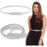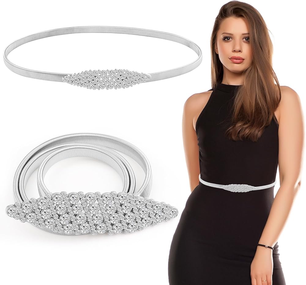 Premium Material:Fashion belt is made of durable, lightweight metal with stretchable spring construction, featuring smooth edges and shiny rhinestones for a refined, elegant look and long-lasting wearability.