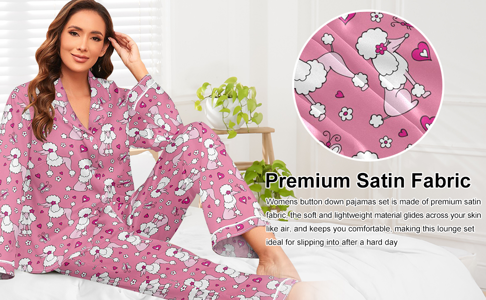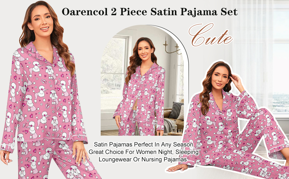 OCCASION: Women's long sleeve satin print pajamas set, suitable for daily wear, daily sleepwear, outfit for women, go shopping, loungewear, bridal nightwear, pajama party, girls day, date nights,honeymoon nights, hotel, vacation. Pajamas shirt or pant is easy to match.