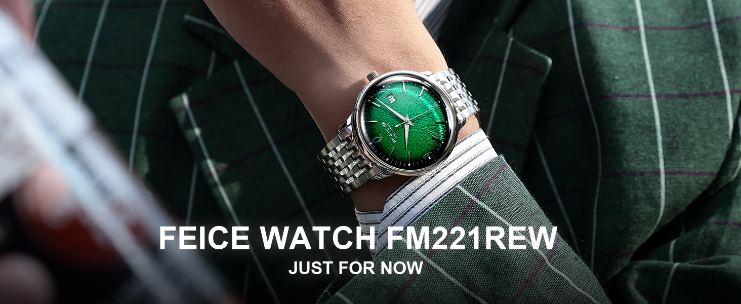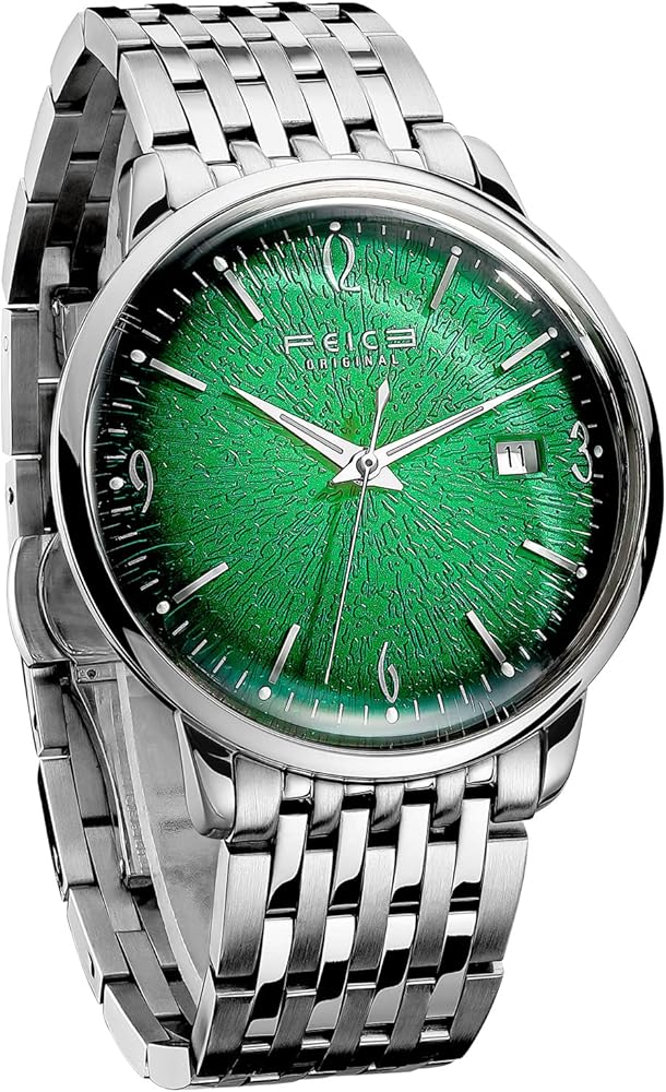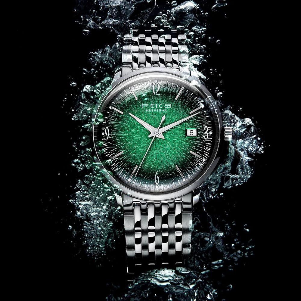 FEICE Mens Vintage Watches Luminous Automatic Silver Stainless Steel Watch Green Dial Mechanical Wristwatch Waterproof Business Dress Watch for Men FM221NEW