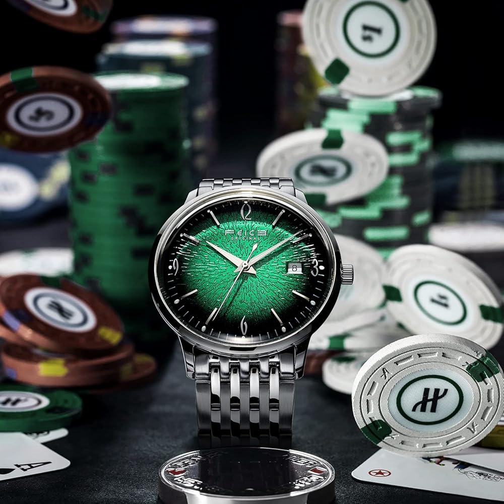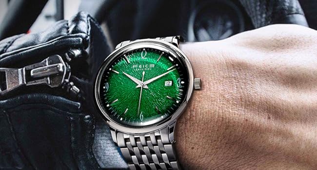 Men's Automatic Mechanical Watches:Vintage 40MM case with unique green dial, fashion luminescent hour markers and hands, a date display positioned at 3 o'clock, fully shows attention to detail and classic design. This mechanical watch can be worn for all types of occasions, from formal to just everyday casual activities.