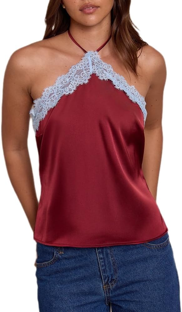 Design: These party tops for women feature a delicate scalloped lace trim and a chic halter neck silhouette to add a feminine touch and sophistication. The tie-back top style enhances your look with effortless elegance.
