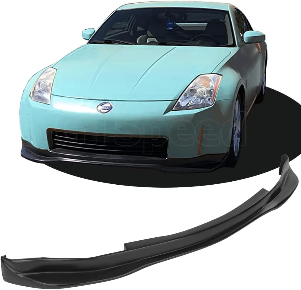 Enhance the aesthetic and aerodynamic performance of your 2003-2005 350Z Fairlady Z Z33, with the GT-Speed GT Style PU Front Bumper Lip. Designed specifically for factory bumpers, this front bumper lip offers a seamless fit, ensuring a sleek and sporty appearance. Manufactured by GT-Speed, a trusted name in the auto and hardware industry, this unpainted black bumper lip provides a customizable option to match your vehicle's color scheme. The a pair pack includes hardware, making installation straightforward and hassle-free. Crafted from high-quality polyurethane (PU), this bumper lip is durable and resistant to wear, promising longevity and sustained performance. Elevate your vehicle's look and function with this expertly designed accessory. Lip Kit Installation: Drilling and professional installation is required. Test fit all items before painting and/or installation. Requires automotive adhesive (3M double side tape are not included) for installation. Lip kit is required to sanded down before applying 3M double-side tape, or it will fall off. Factory bumper needs to be installed on the vehicle, or the lip will not fit. Professional paint job is required. Sand and Primer is required prior painting, or the paint will not stick.