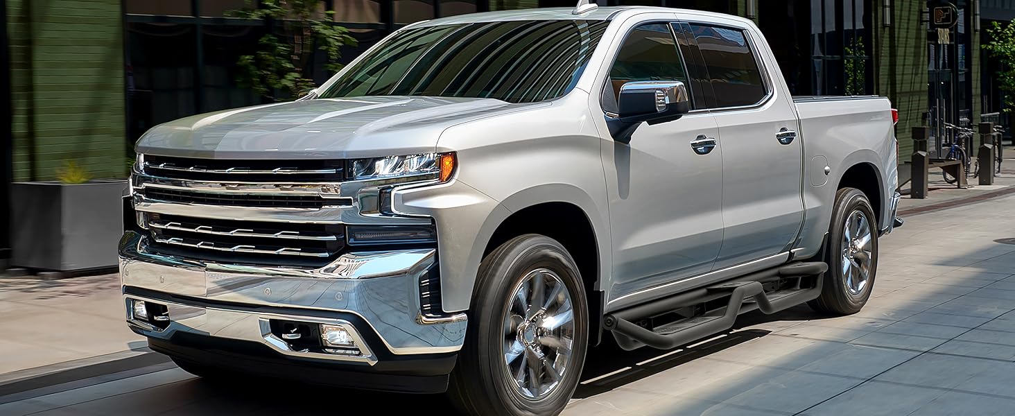 【Compatibility】: Two Raised Steps Running Boards are compatible with 2019-2026 Chevy Silverado & GMC Sierra 1500, 2020-2026 Chevrolet Silverado & GMC Sierra 2500HD 3500HD Double Cab/Extended Cab (2 Full-Size Front Doors & 2 Narrower Rear Doors). If you are not sure about your model, please check the cab dimensions picture.