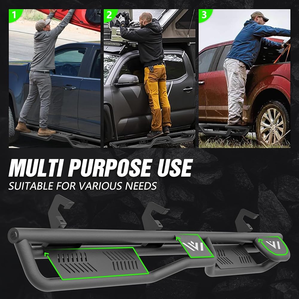 【Easy Installation】: Simple bolt-on installation without the need for drilling or cutting. Precisely aligned mounting holes require only about 20 minutes for complete setup. The package includes 2 side bars, a set of brackets, installation instructions, and all necessary hardware—no additional parts required.