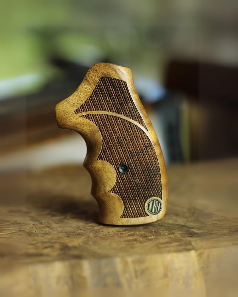 CLASSIC DESIGN: Handcrafted wooden grip featuring traditional checkered pattern and iconic Rossi logo, perfect for modern Rossi RP 63 models from 2020 onwards
