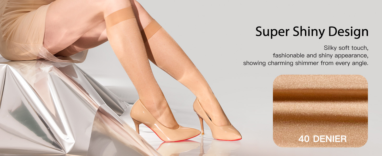 Luminous Legs: Crafted from 40 denier oil-shine fabric with a subtle reflective sheen, it instantly flatters the calf and adds a touch of glamour to any look.