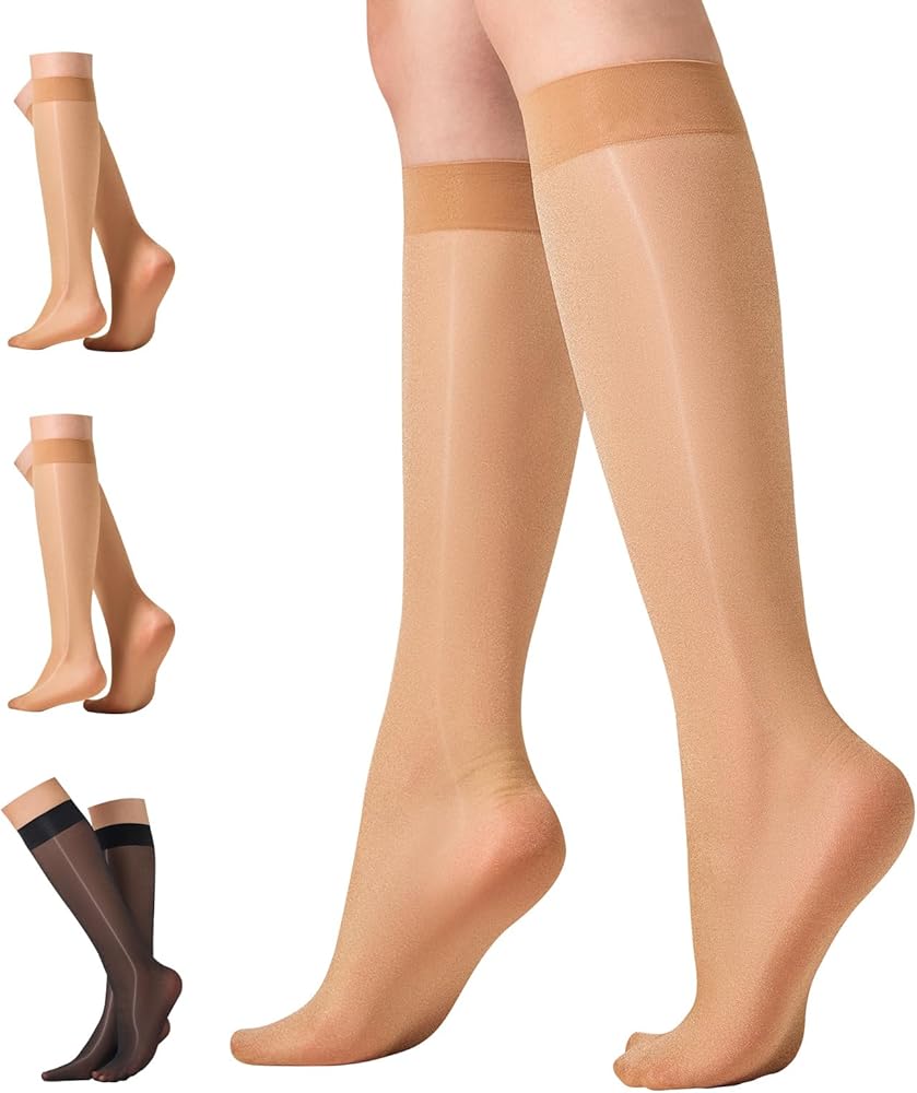 Great Value 3-Pack: These black and nude stretch socks are one size fits all, accommodating US shoe sizes 6 to 8.5. Each box contains three pairs of nylon knee-high socks, available in three packaging options: all black, all nude, and one pair black and two pairs nude.