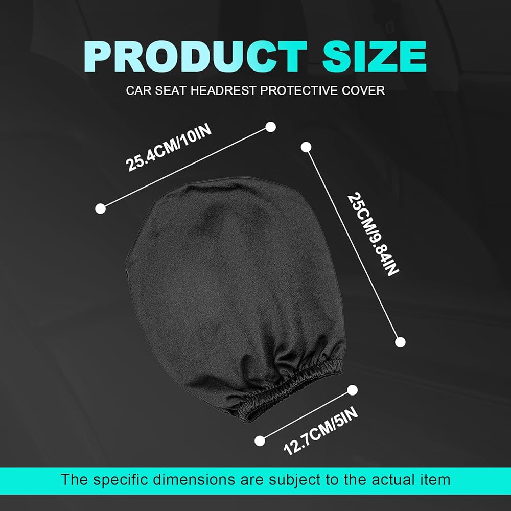 Specifications: 9.44 in x 10.23 in. You'll get 2 headrest protective covers in one set. Please note that all dimensions are measured manually, so a 1-2mm error may occur—but this won't impact the product's use.
