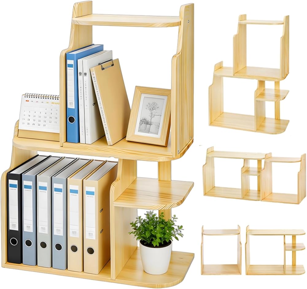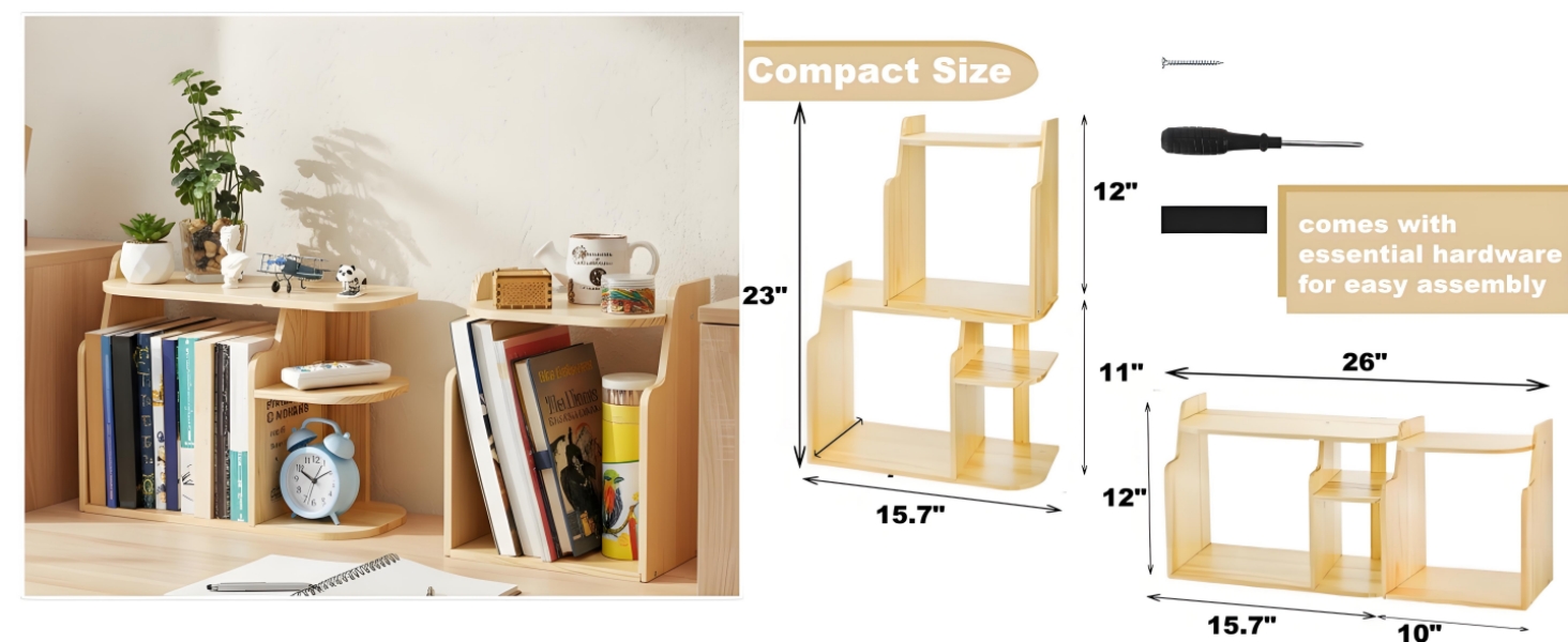 Simple Assembly: The minimalist design makes this small bookshelf organizer quick to assemble. With included tools and instructions, you can easily switch the layout horizontally or vertically to suit your desktop setup and book arrangement