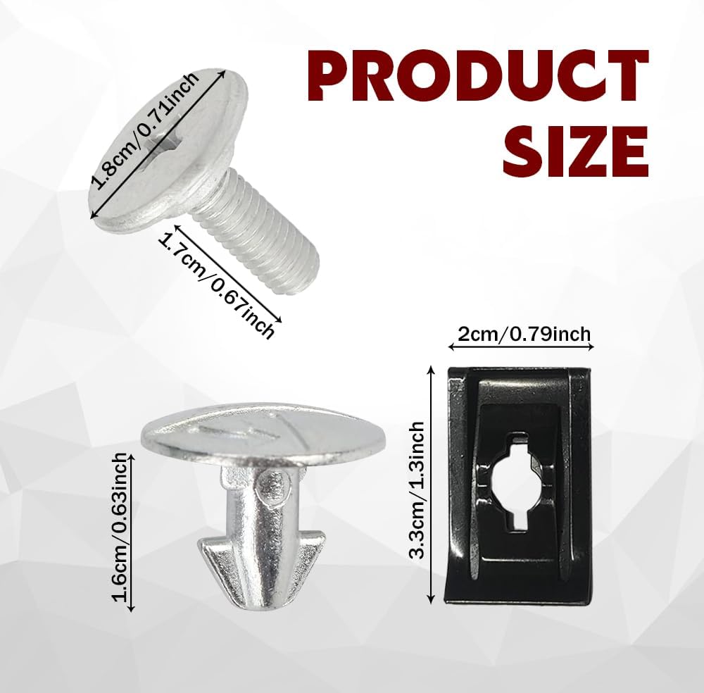 Products include: You will receive 8 silver lower bonnet screws and 6 black clamps, designed to withstand harsh automotive conditions, to protect your car for the long term, ideal for regular maintenance and repair of your car's engine protection accessories