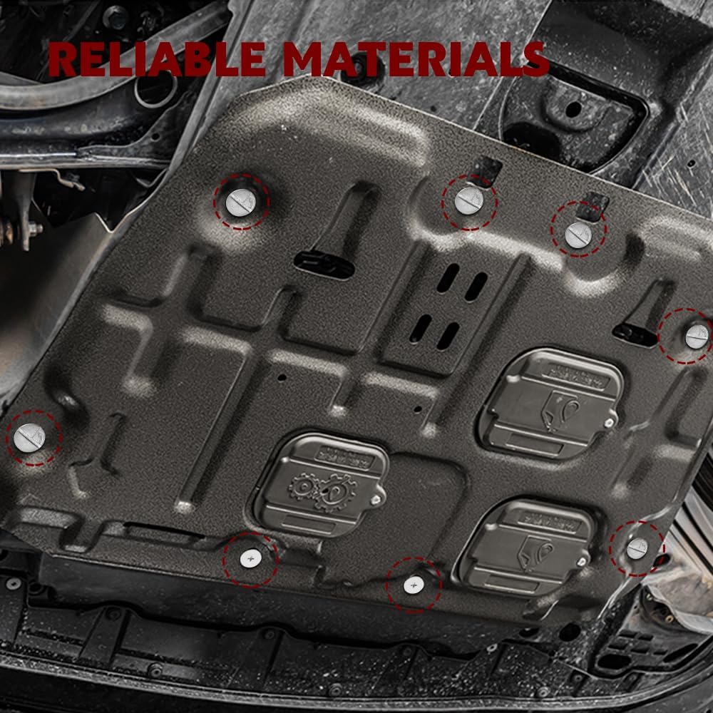 Easy installation: The engine splash shield screws are designed for easy installation. You only need to use bolts to connect the oil pan drain plug to the specified position, and then fix the clamp and screw on the engine cover, safe, fast and firm, will not easily fall off, safe and stable