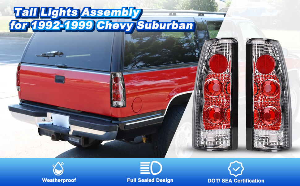 🚙【Compatible Vehicles】Factory-style tail light assembly is compatible with 1988-1999 Chevy C/K 1500/ 2500/ 3500;1992-1999 Chevy Suburban 1500/ 2500;1992-1994 Chevy Blazer;1995-2000 Chevy Tahoe and for Cadillac Escalade 1999-2000. Please confirm your vehicle's year and model before purchase.
