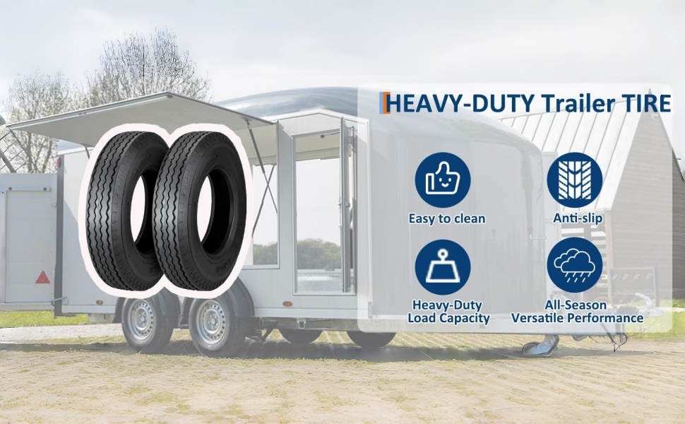 【Superior All-Weather Traction and Stability】 Featuring a deep 6mm tread depth and an all-weather compound, these radial trailer tires enhance grip on wet roads, dry highways, and light gravel. The design promotes stable towing, smoother rides, and reliable braking, giving you confidence in diverse driving conditions.