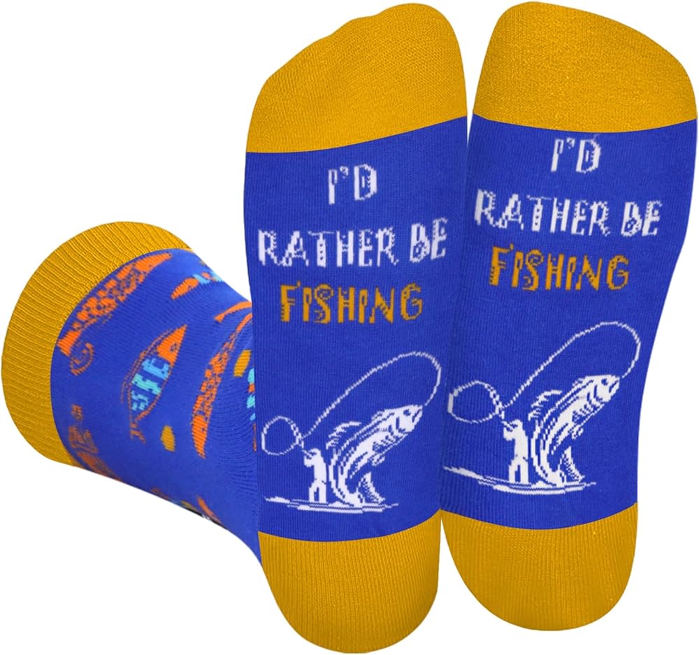 - UNIQUE THEMED SOCKS: These funny socks themed with "I'D RATHER BE FISHING" are the thoughtful and practical gift for fishing enthusiast