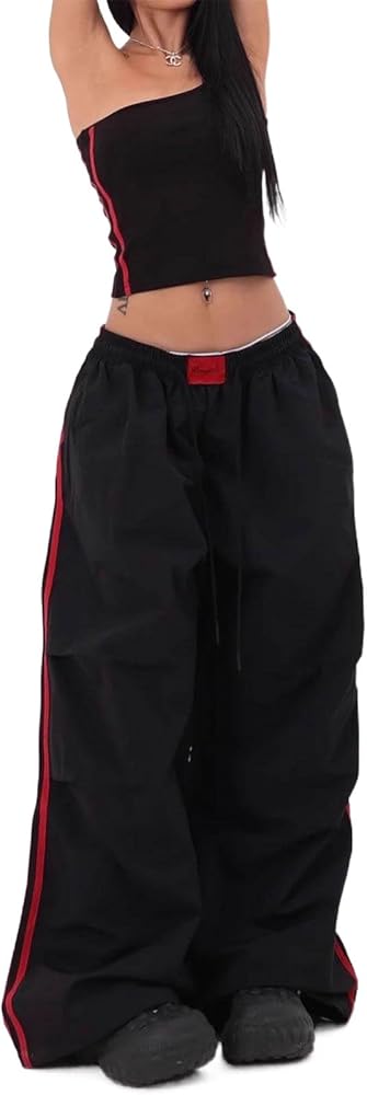 Iconic Y2K Parachute Pants Style - Baggy wide-leg silhouette with cargo pockets and contrast stripe details for authentic retro vibes. - Perfect for 90s hip-hop parties, rave festivals, or vintage-inspired streetwear looks.