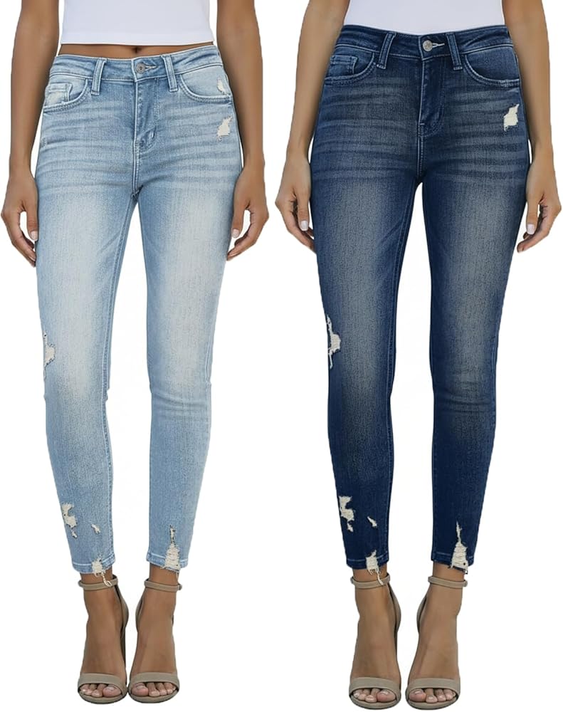 MID WAIST & TUMMY CONTROL: Close to the body are designed to perfectly show your beautiful leg silhouette and the shapes of your curves,so that you will feel free in all positions when sitting or squatting,The design of skinny fit style, washed fading perfect to highlight your long straight leg easily and make you more charming