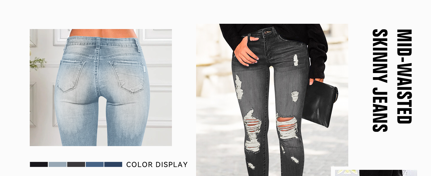 المواد: جينز ضيق للنساء مصنوع من قماش الدنيم المريح القابل للتمدد مع قوة تحمل مذهلة لتعزيز الصورة الظلية الطبيعية للجسم، مع خلق مظهر أنحف وأكثر انسيابية.