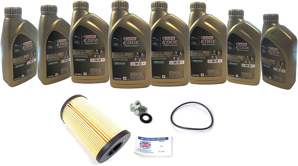 [GENUINE OIL] - Includes (8) quarts of OEM genuine synthetic SAE 0W-20 EC Oil with special Land Rover-developed additives, item # 15AF6F, specification STJLR.51.5122 and STJLR.03.5006