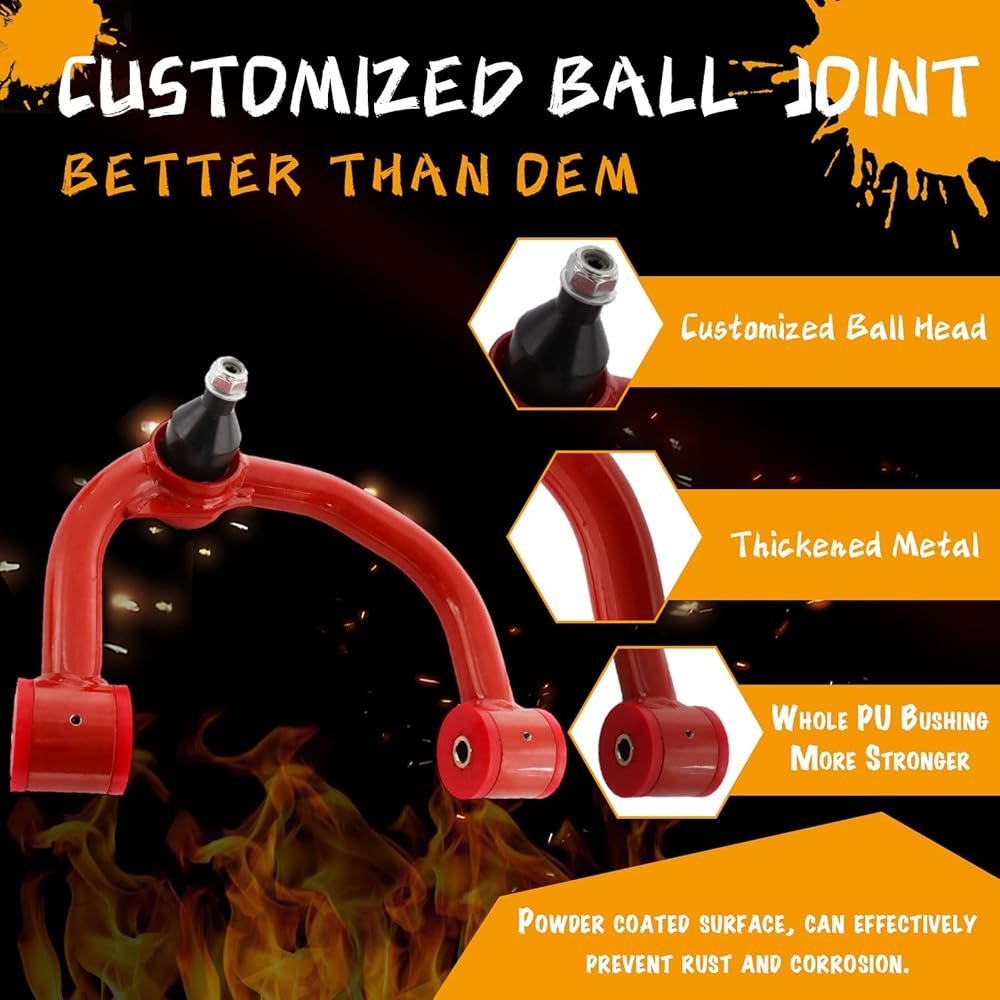 Front Upper Control Arm 2-4" Lift with Ball Joint For 2004-2020 Ford F150, Red Suspension Kit Adjustable Control Arm, Replacement OEM Factory/Stock Suspension Arms