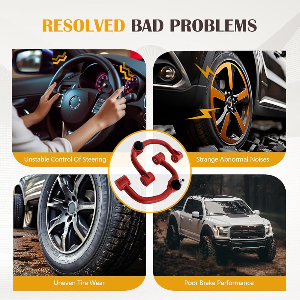 【Compatiable with】-----The upper front control arm is suitable for 2004 2005 2006- 2016 2017 2018 2019 2020 F150 2WD 4WD, Better replacement of the OEM control arm, raise the vehicle 2-4". The control arm can fit the original wheel perfectly.