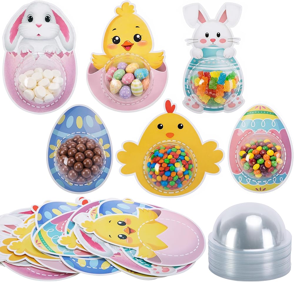 42 Pcs Easter Candy Cards with Plastic Domes, DIY Bunnies Eggs Chick Card Candy Holder, Fillable Easter Greeting Cards Holder Exchange Gifts for School Class Spring Party Favors (Candy Not Included)