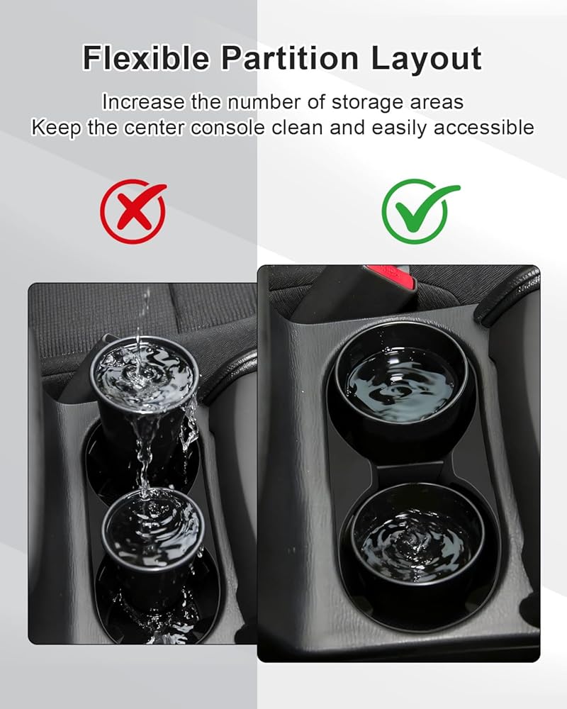 Flexible Divider Layout: Cup holder insert divider set Transforms a single cup holder into multiple storage sections, allowing you to neatly arrange cups, bottles, and small essentials while keeping the center console orderly and easy to access