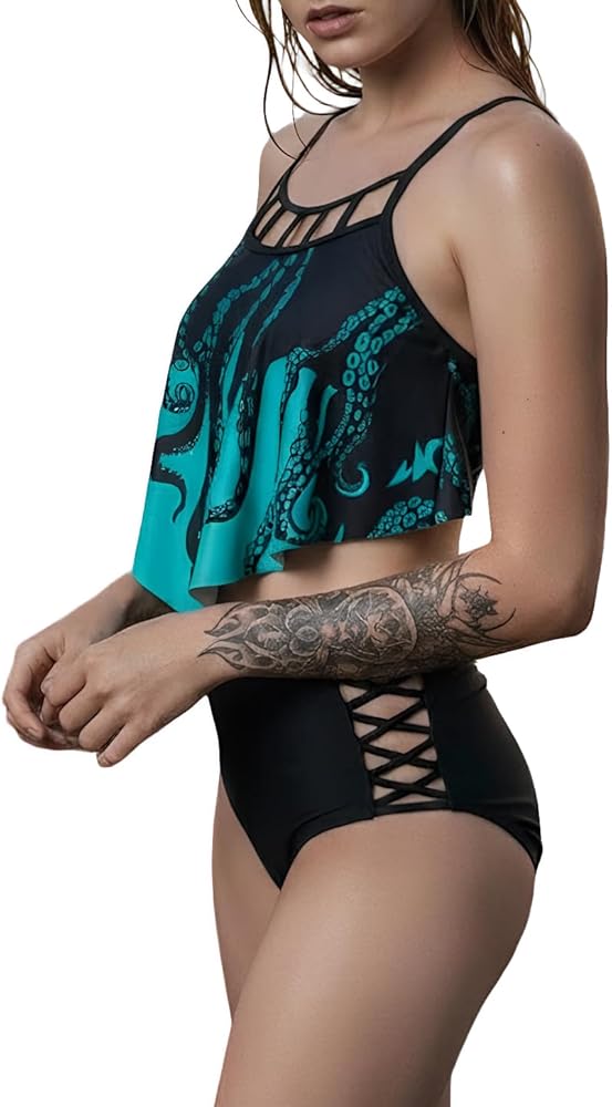 UNIQUE GOTHIC VINTAGE STYLE: Stand out from the crowd with this DRESSFO two-piece bikini featuring a striking gothic octopus print. It perfectly blends retro charm with an edgy, mysterious vibe, making you the center of attention at any beach, pool party, or vacation resort