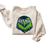 This Seattle-inspired graphic sweatshirt features a bold bird illustration with a modern, edgy style. Designed for comfort and everyday wear, it combines a relaxed unisex fit with a striking city-themed artwork that stands out effortlessly. Made for casual outfits, layering, or relaxed weekends, this crewneck sweatshirt offers a soft feel and durable print that holds up wash after wash. Available in two versatile color options, it's an easy choice for anyone who loves urban style, graphic fashion, and cozy essentials. Whether you're heading out, staying in, or gifting someone special, this sweatshirt delivers comfort, style, and a confident look all year round.