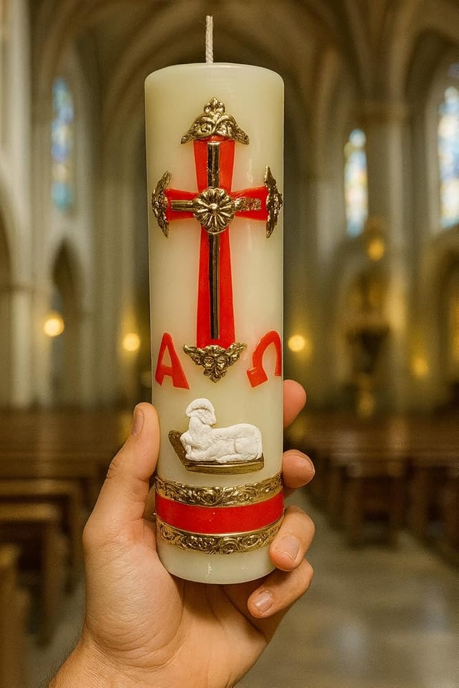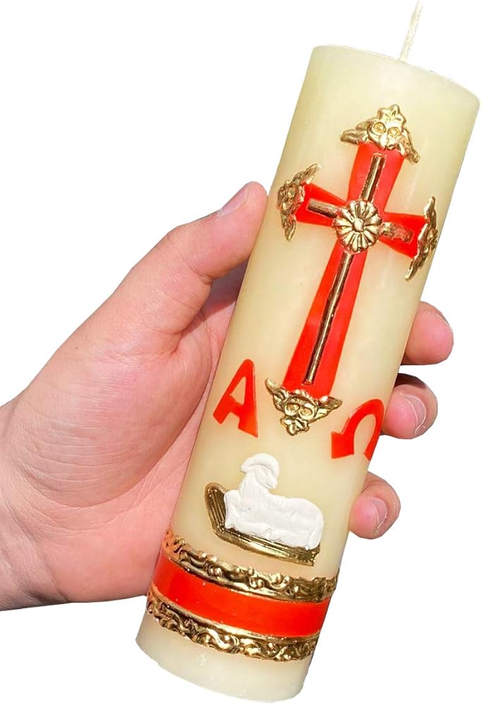 THE BLESSED CIRIO PASCUAL - This divine wax candela is the holy light of the easter vigil candles for the paschal lenten it represents the mercy of the catholic trinity with the lamb and la sangre de cristo. its a devotional blessing for the catholic family within the easter celebration or pascua.