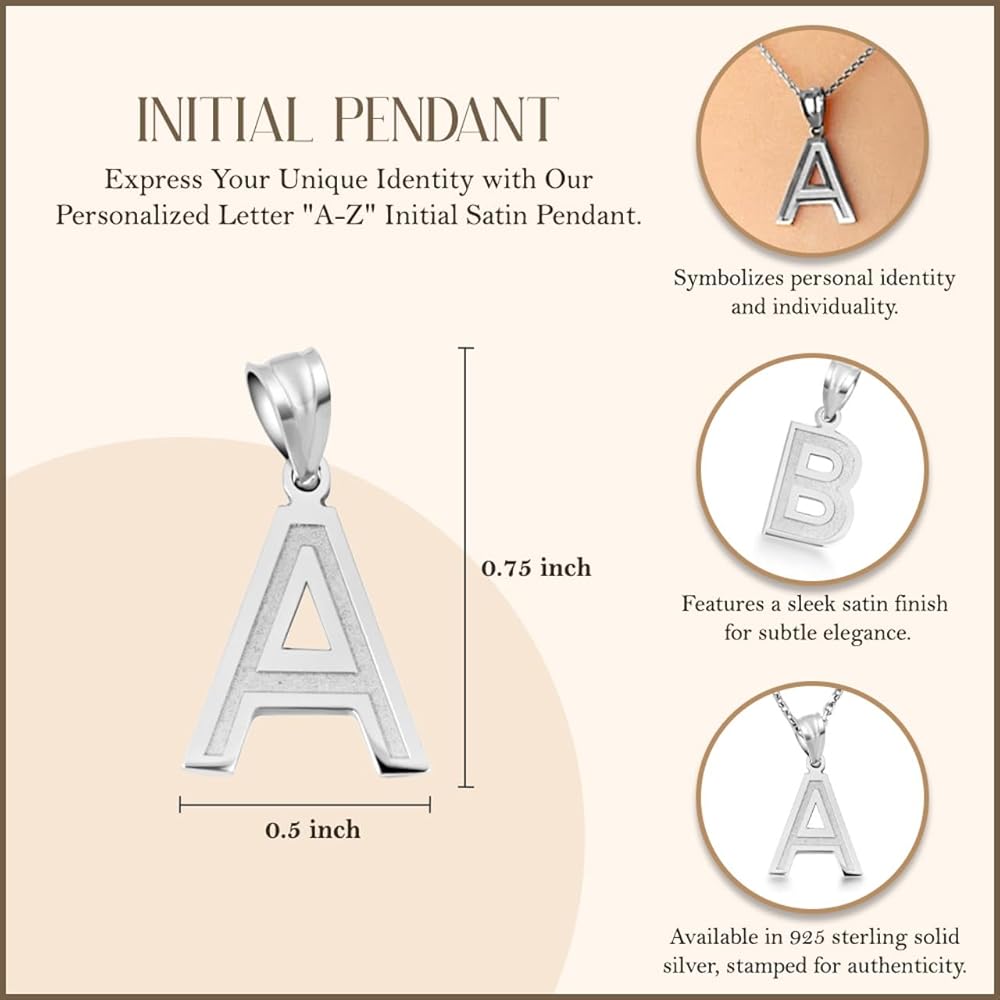 A Personalized Letter "A-Z" Initial Satin Finish Pendant is a sophisticated way to showcase your unique identity or celebrate a loved one's initials. Each pendant features a sleek satin finish, offering a subtle yet elegant appearance that highlights the importance of personalization in jewelry. This pendant is perfect for those who appreciate a touch of individuality in their accessories, making it a cherished keepsake or a thoughtful gift for special occasions.