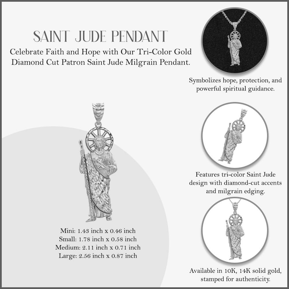 Claddagh Gold .925 Sterling Silver Sparkle Cut Patron Saint Jude Milgrain Necklace Religious Jewelry | Choice of Size (S-L), Pendant Only or Chain Length
