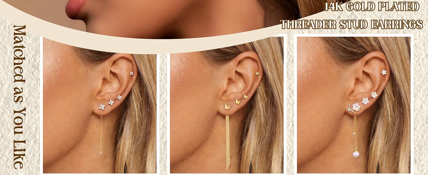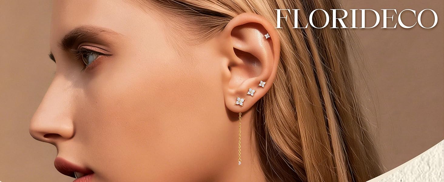 14K Gold Plated Earrings Set Size: Gauge:20G(0.8 mm), post length: 10mm, flower size: 4/5/6/8mm. The secure butterfly clasp adds an extra layer of protection, ensuring your earrings stay in place. Fit flawlessly together on your ear canvas—from lobe to helix to cartilage.Create many different looks for you and get more compliments!