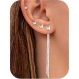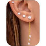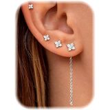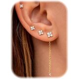 Earrings Stacks for Multiple Piercing: Including 3 pairs of stud earrings and 1 pairs dangle chain earrings. Trendy 14k gold plated earrings stacks, perfect for cartilage, helix, tragus, conch, and standard lobe piercings. The set includes a standout long chain design that merges vintage elegance with modern fashion for a truly versatile styling.