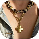 Versatile Styles: Mix of solid, enamel, tortoiseshell and vintage-engraved crosses; some designs feature layered paperclip chains—pairs with tees, dresses, or evening looks
