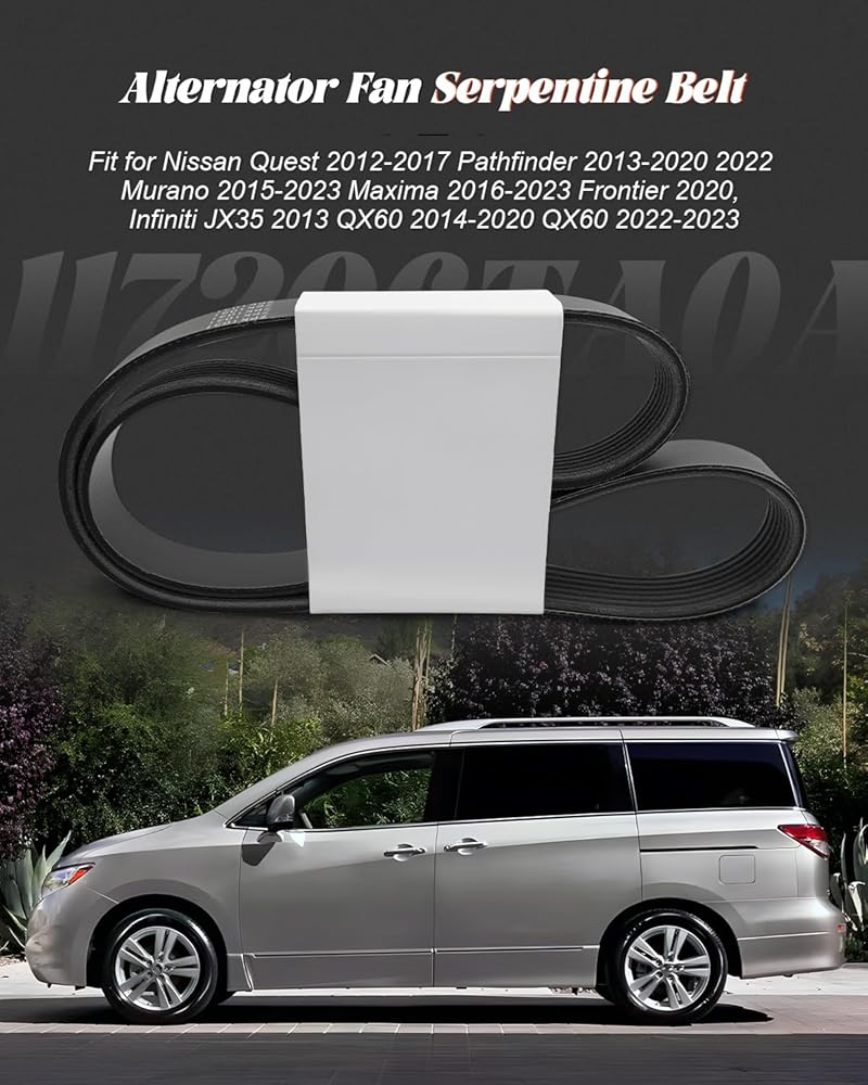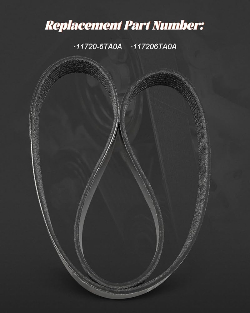Replacement part numbers of alternator fan serpentine belt: 11720-6TA0A, 117206TA0A