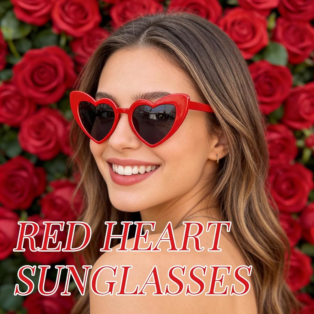 Mysterious & Chic Valentine Vibe: Shield her in style with these trendy red heart sunglasses! Ideal for a sunny Valentine's Day brunch or a romantic stroll, they add a touch of playful mystery and keep her looking effortlessly cool
