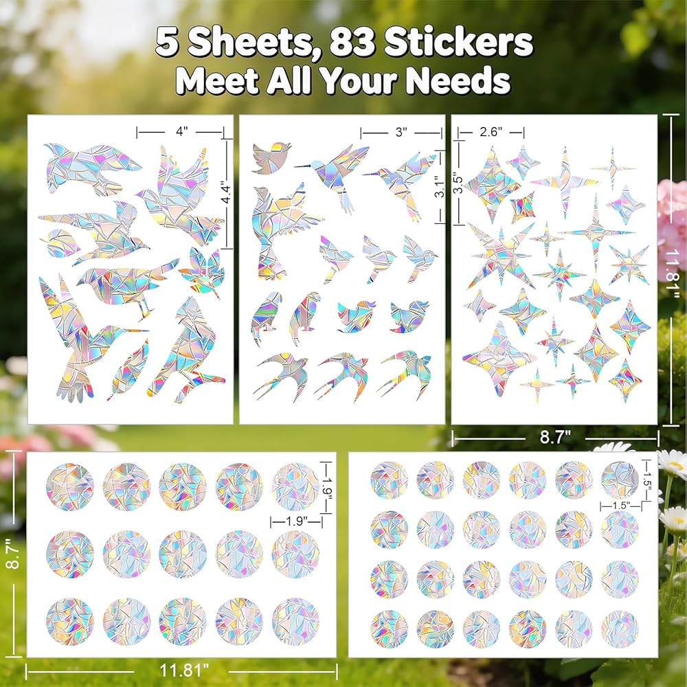 Beautiful Designs: Includes 83 colorful decals featuring birds, stars, circles, and diamonds to enhance your windows.