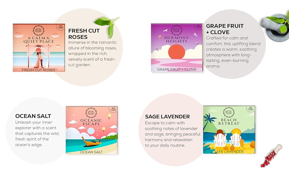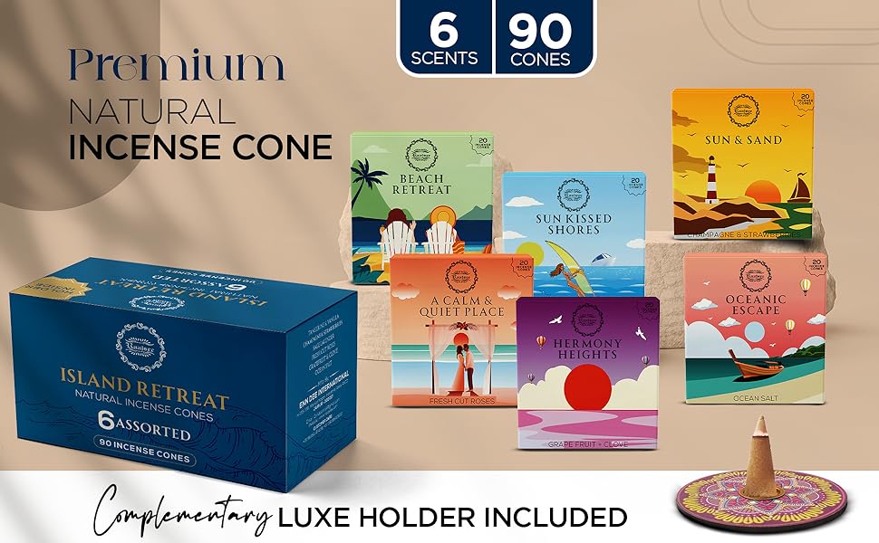 Long-lasting Variety Pack: Enjoy 90 Cones with a 25 -minute burn time each, plus a complimentary holder. No black smoke emission. Explore six unique fragrances from floral and herbal to woody and exotic for any mood and occasion.