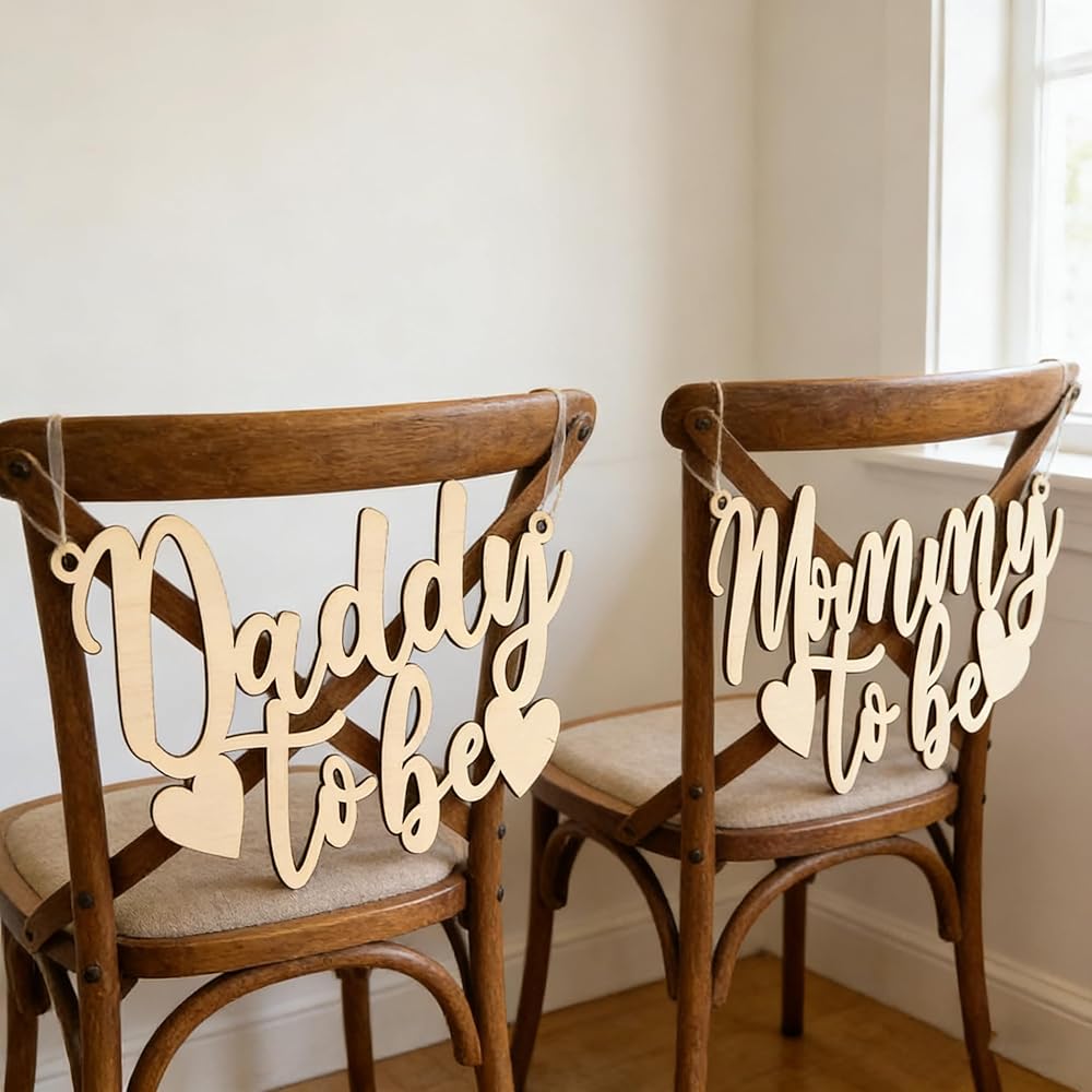 1. Premium Natural Wood Construction Crafted from high-quality, sturdy natural wood, this 2-piece “Mommy to Be” and “Daddy to Be” chair sign set boasts exceptional durability and a warm, rustic aesthetic. The wood features a smooth finish with no rough edges, ensuring a polished look that complements any baby shower or maternity event decor. Unlike flimsy alternatives, these wooden signs are built to last, resisting wear and tear for repeated use or as a lasting keepsake. 2. Adorable & Heartfelt Design Featuring elegant, cursive lettering for “Mommy to Be” and “Daddy to Be,” each sign is accented with sweet heart cutouts, adding a touch of love and charm. The natural wood tone brings a cozy, inviting feel, while the playful yet sophisticated design perfectly captures the joy and anticipation of welcoming a new baby. 3. Effortless to Attach & Display Each sign comes with pre-drilled holes and includes twine for quick, hassle-free setup. Simply tie them to chairs at your baby shower, gender reveal party, or maternity photoshoot—no complex tools or assembly required. The lightweight wood ensures they stay securely in place without damaging chairs, while their size (perfectly proportioned for standard chairs) makes them visible and eye-catching. 4. Versatile for Baby-Related Celebrations Ideal for baby showers (traditional or themed), gender reveal parties, maternity celebrations, or maternity photoshoots! These signs add a personalized touch to any event, complementing decor styles from rustic and boho to classic and modern. They also shine as decor accents for nursery-themed parties or “parents-to-be” seating areas. 5. Cherished Keepsake for Memories Long after the celebration ends, this wooden sign set transforms into a cherished memento. Display them in the nursery as decorative wall art, keep them as a reminder of the special day, or gift them to the parents-to-be as a thoughtful token. Their timeless design and durable wood construction ensure they remain a beloved piece of memorabilia, celebrating the exciting journey into parenthood.