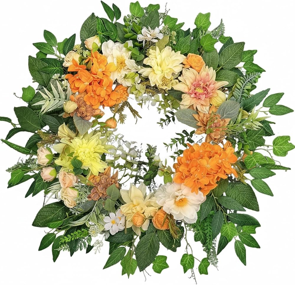 [Adjustable 26-Inch Fullness] Hand-assembled on a 12-inch natural grapevine base. The wreath arrives in a compact box to protect the silk petals; flexible wired stems allow for easy "fluffing" to reach a full 26-inch outer diameter.