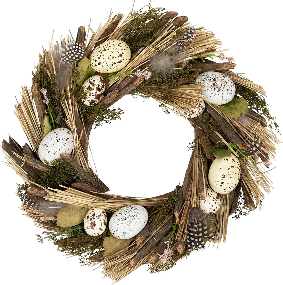 Northlight Speckled Eggs and Feathers Artificial Small Earthy Easter Wreath - 14"