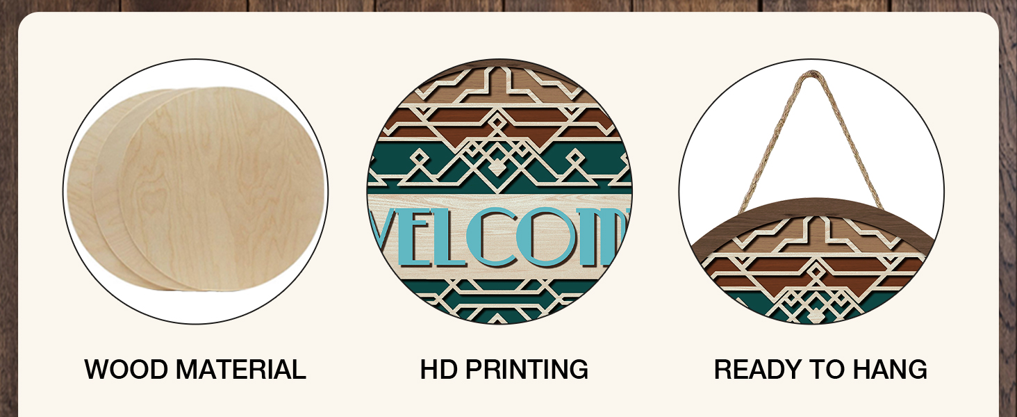 UNIQUE DECOR: Bolisom rustic door wreath sign comes with patterns. The exquisite pattern is single-sided printed on the wooden board which is clear and vibrant