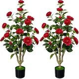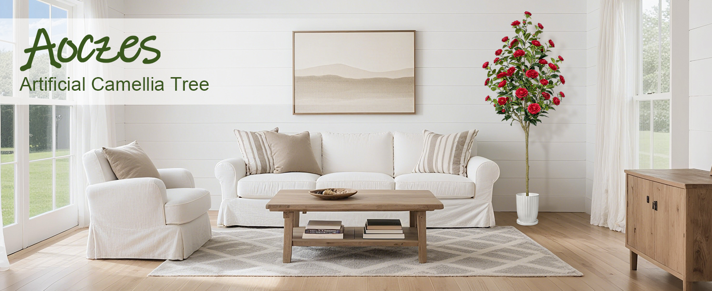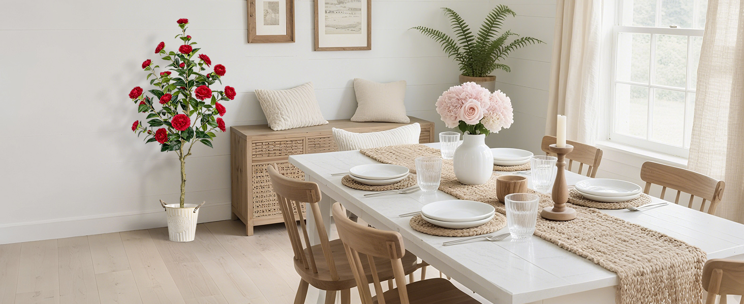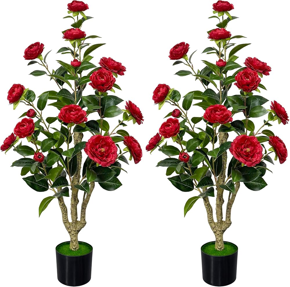 Multi-purpose Decor: This 4ft tall red artificial camellia tree is 1pc, ideal for indoor outdoor decorations such as for living, dining, office, porch, entryway, patio, party, holiday decorations, also good gift for housewarming or other occasions