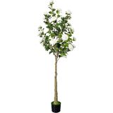Durable Material: The artificial camellia tree is made of silk fabric flowers, rubberized fabric green leaves, plastic trunk and branches, black pots include artificial moss and cement reinforcement to ensure that the fake plant solidly and durably