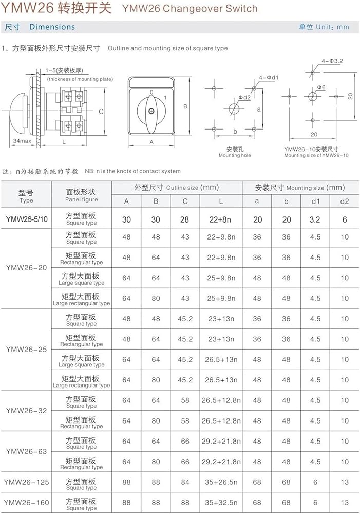 YMW26 LW26-10/1 Universal Transfer Rotary Cam Switch 10A One Level Section Double Power Supply Switching Reversing Combination