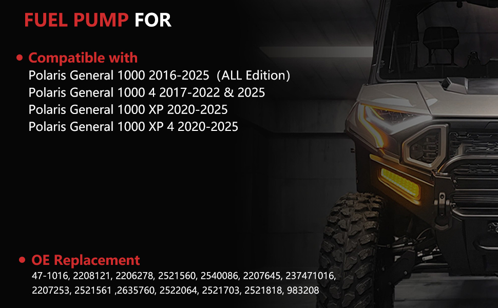Fuel Pump Assembly for Polaris General 1000 ALL Edition 16-25 / General 1000 4 17-22 / General 1000 XP 20-25 / General 1000 XP 4 20-25 Replaces OE# 2208121 2206278 2521560 47-1016