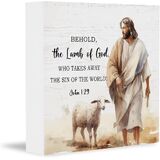 Christian Easter Lamb Bible Verse Wooden Box Sign, Religious Bible Verse Easter Day Deccor, Jesus John 1:29 Scripture Quote Behold The Lamb of God for Wall Desk Shelf Tabletop Decoration Plaques in Kuwait