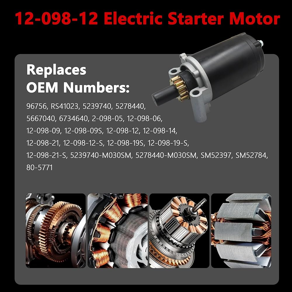 Starter Motor for Kohler Engine 12.5HP 13HP 14HP 15HP 17HP 20HP 12-098 Series Replaces OE# 12-098-12, 12-098-19, 12-098-19S, 12-098-21, 12-098-21S, SM52397, SM52784, 5239740